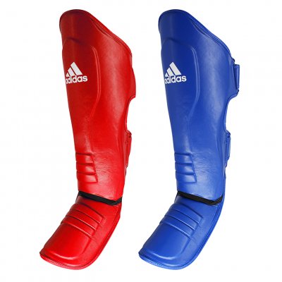 Paratibia e piede Super Pro Shin Instep rosso o blu.